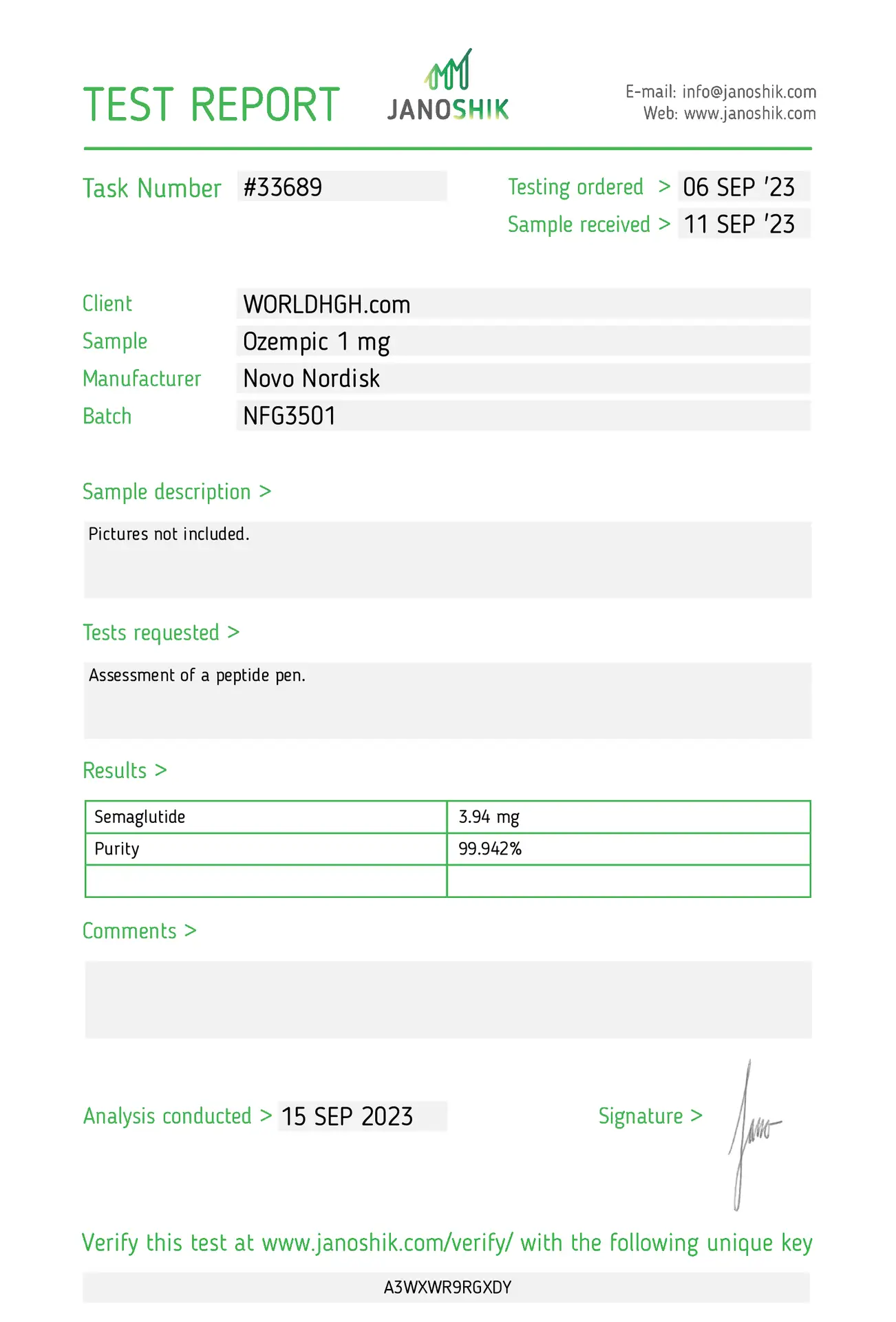 Lab test result – https://janoshik.com/tests/33689-Ozempic_1_mg_A3WXWR9RGXDY